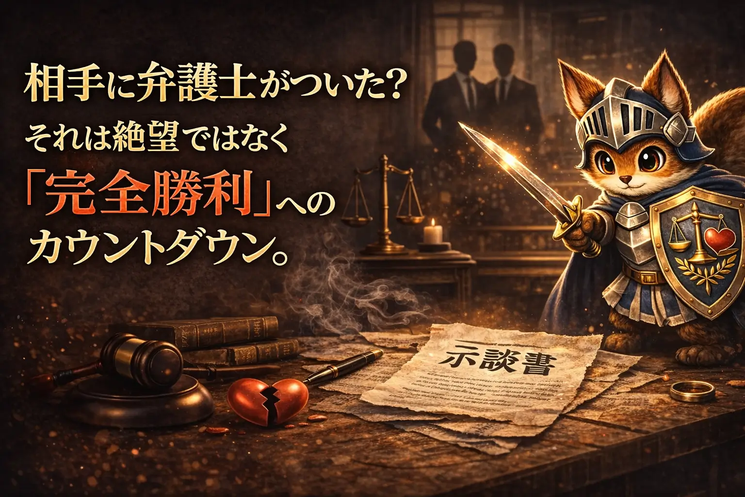 相手弁護士が提示する数字に、あなたが頷く必要はありません。 納得のいく「戦果」を手にするその瞬間まで、私はあなたの知略となり、横で共に戦い続けます。